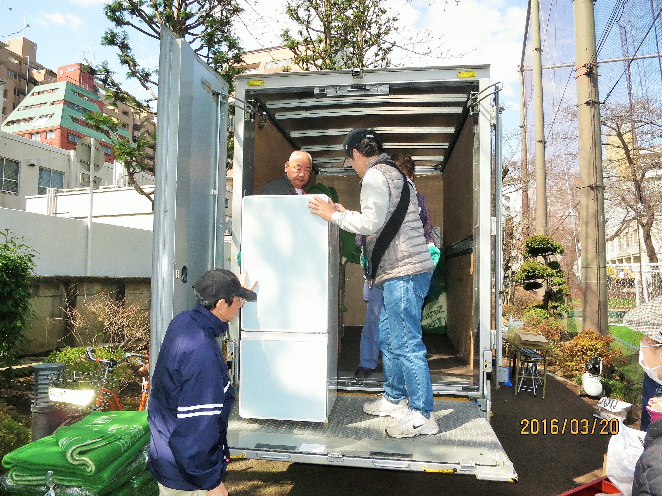 首都圏物流グループ様には贈呈日の各施設への家電・家具配送を一手に支援いただいています。(株)菊池商会様には引き取りのためのトラックをお借りしています。